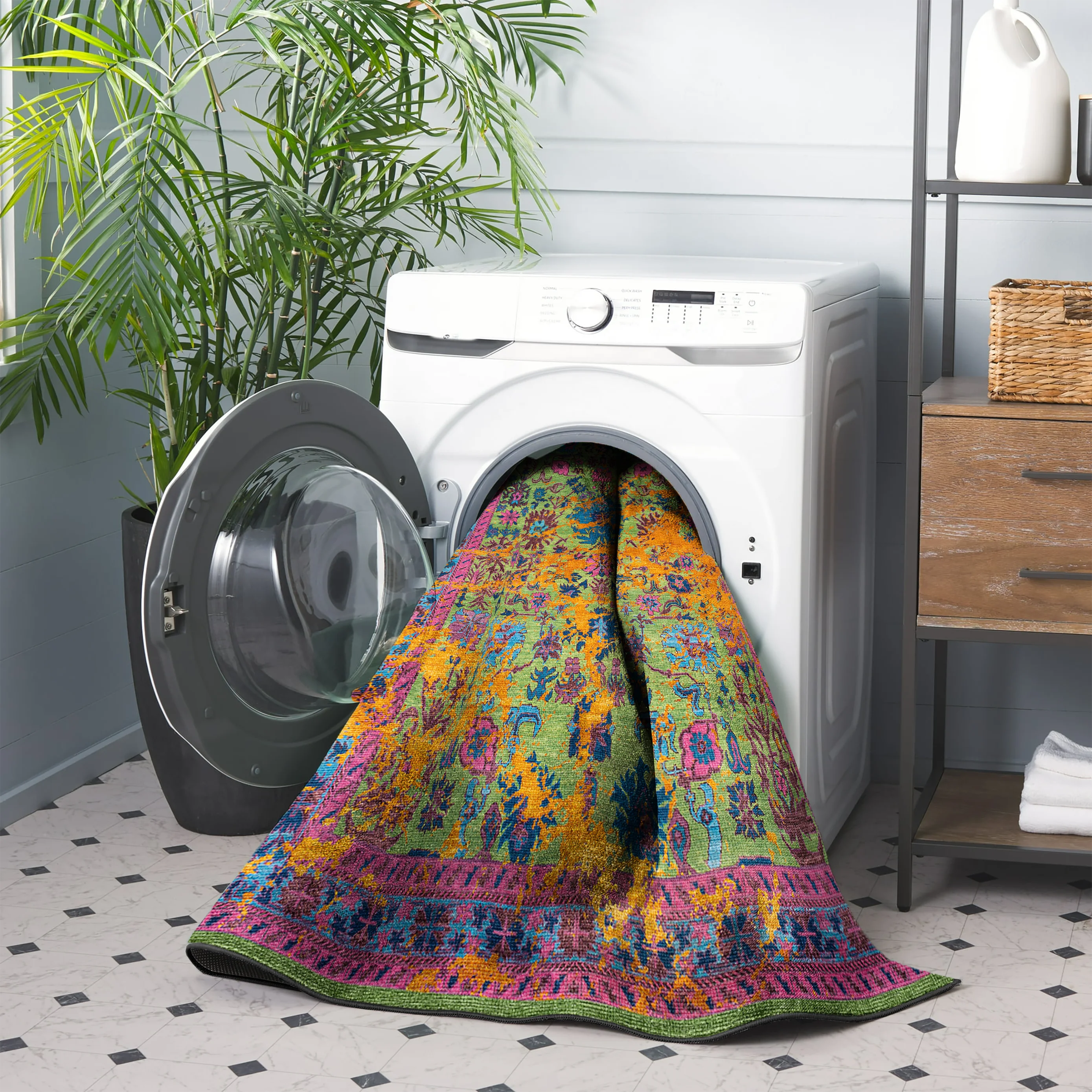 Say goodbye to worries about daily dirt and stains—simply toss your rug into the washing machine and enjoy a clean, fresh space anytime. Combining practicality with style, this rug is designed to make your life easier!