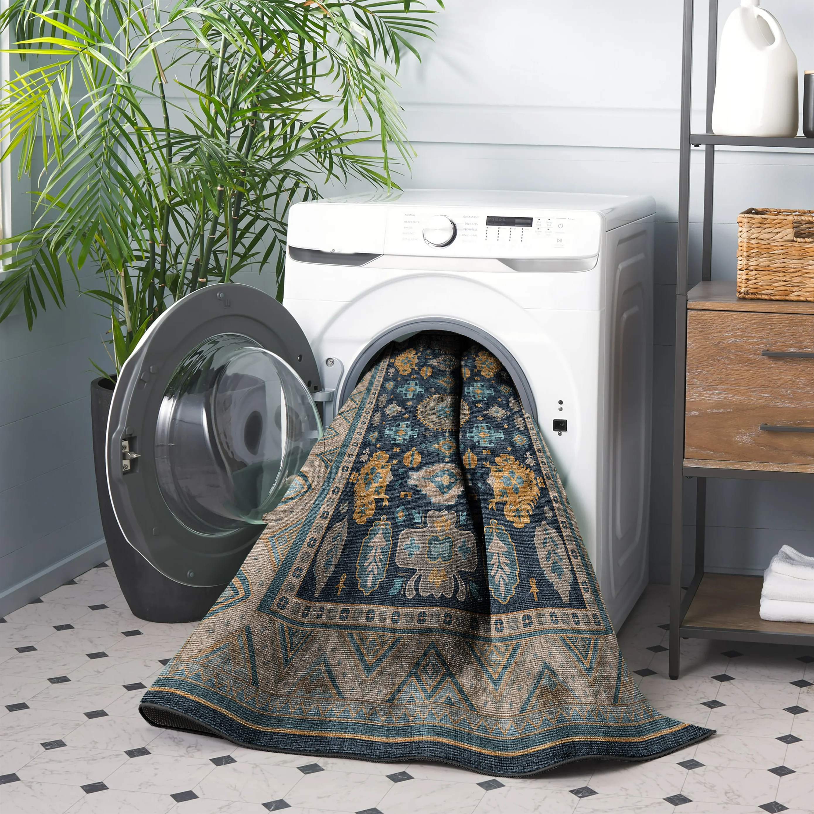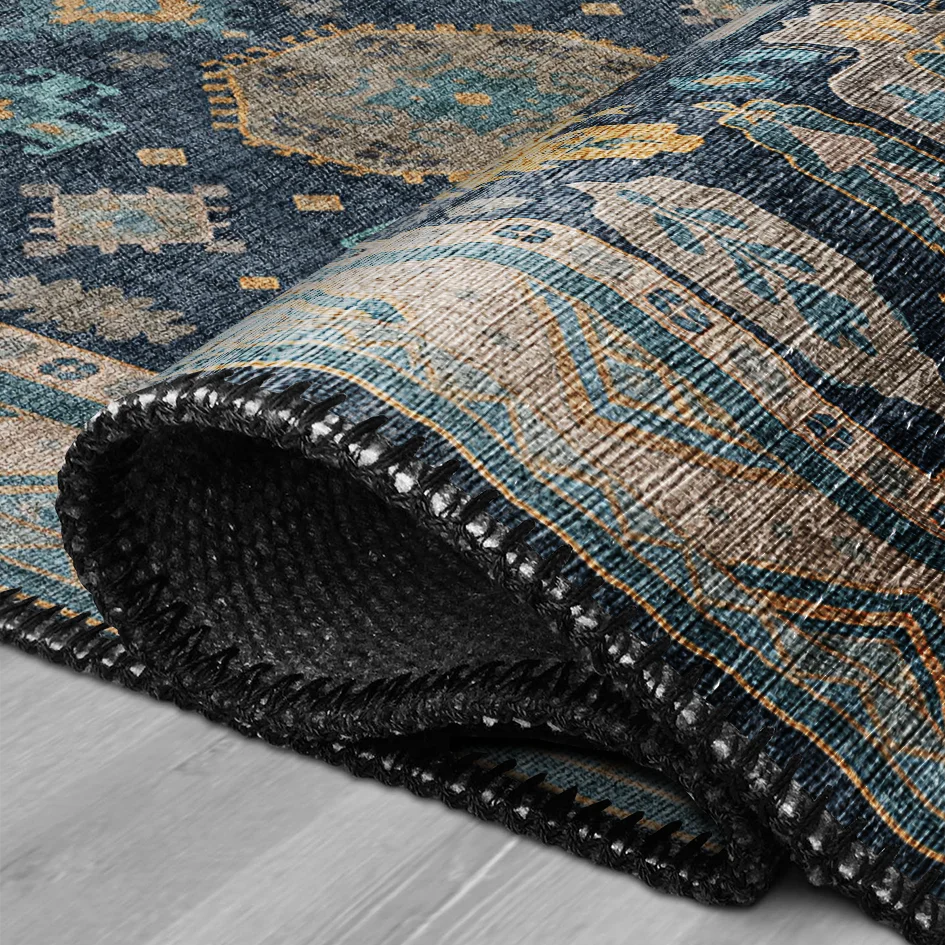 Machine-washable Dark Blue Area Rug, perfect for high-traffic areas