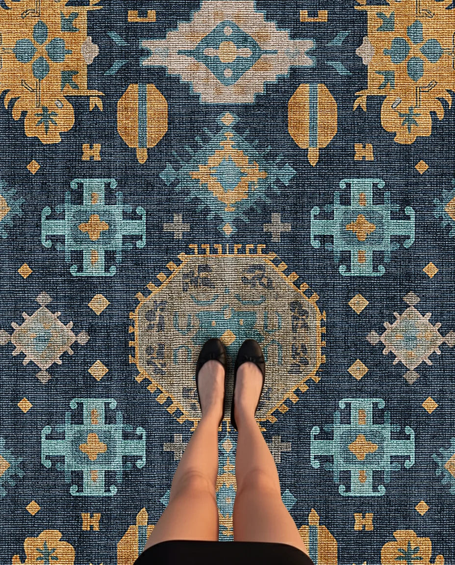 Expertly crafted from premium-quality cotton and reinforced with a strong woven cotton base, the Navy Background Heritage Rug is soft, breathable, and long-lasting. Its detailed motifs are printed with fade-resistant dyes, ensuring the deep navy hues and intricate heritage designs stay brilliant for years.