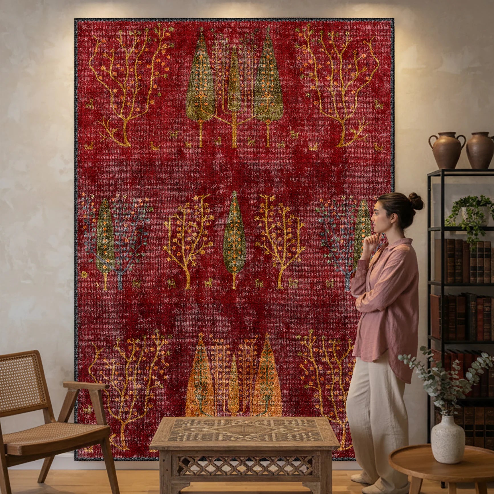 Made from premium-quality cotton and reinforced with a strong woven cotton base, the Red Tree of Life Rug is soft, breathable, and built to last. Its symbolic artwork is printed using fade-resistant dyes, ensuring lasting color richness and design clarity over time.